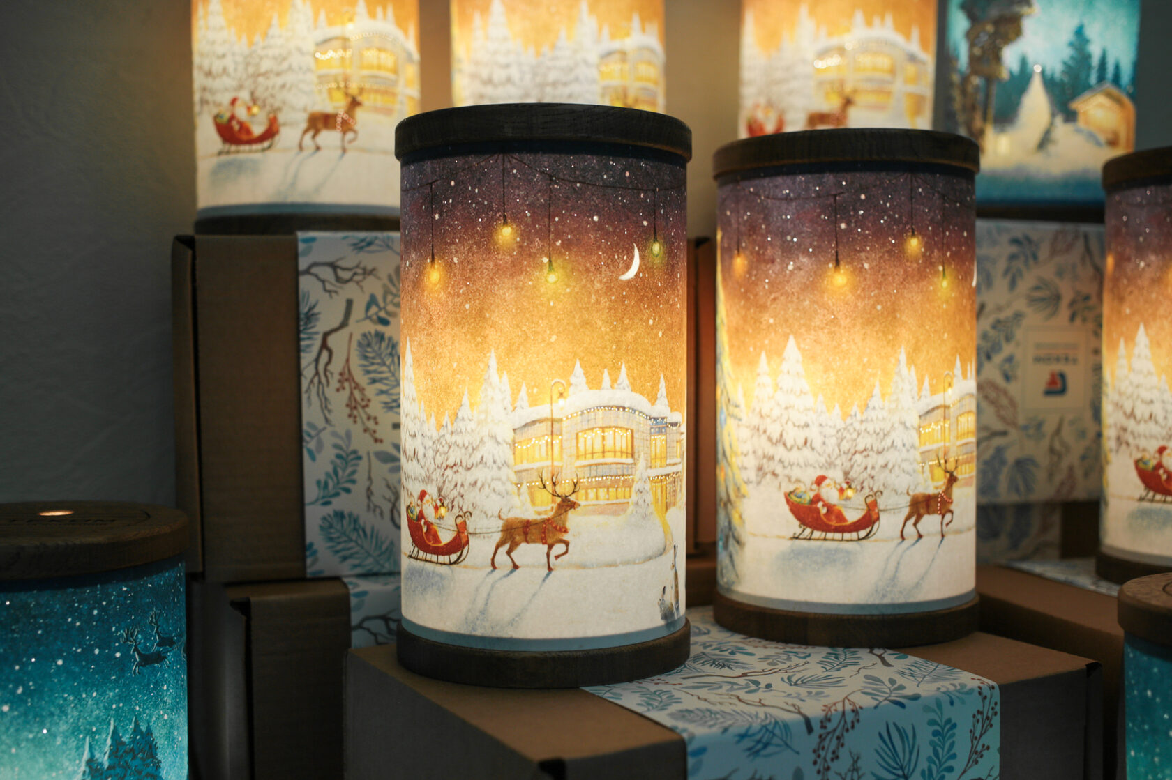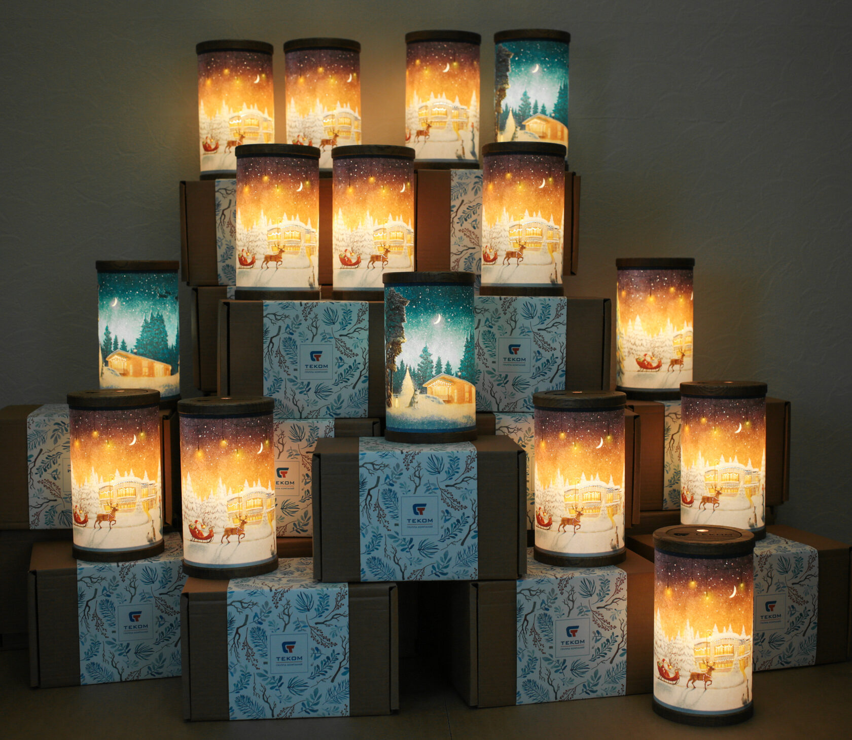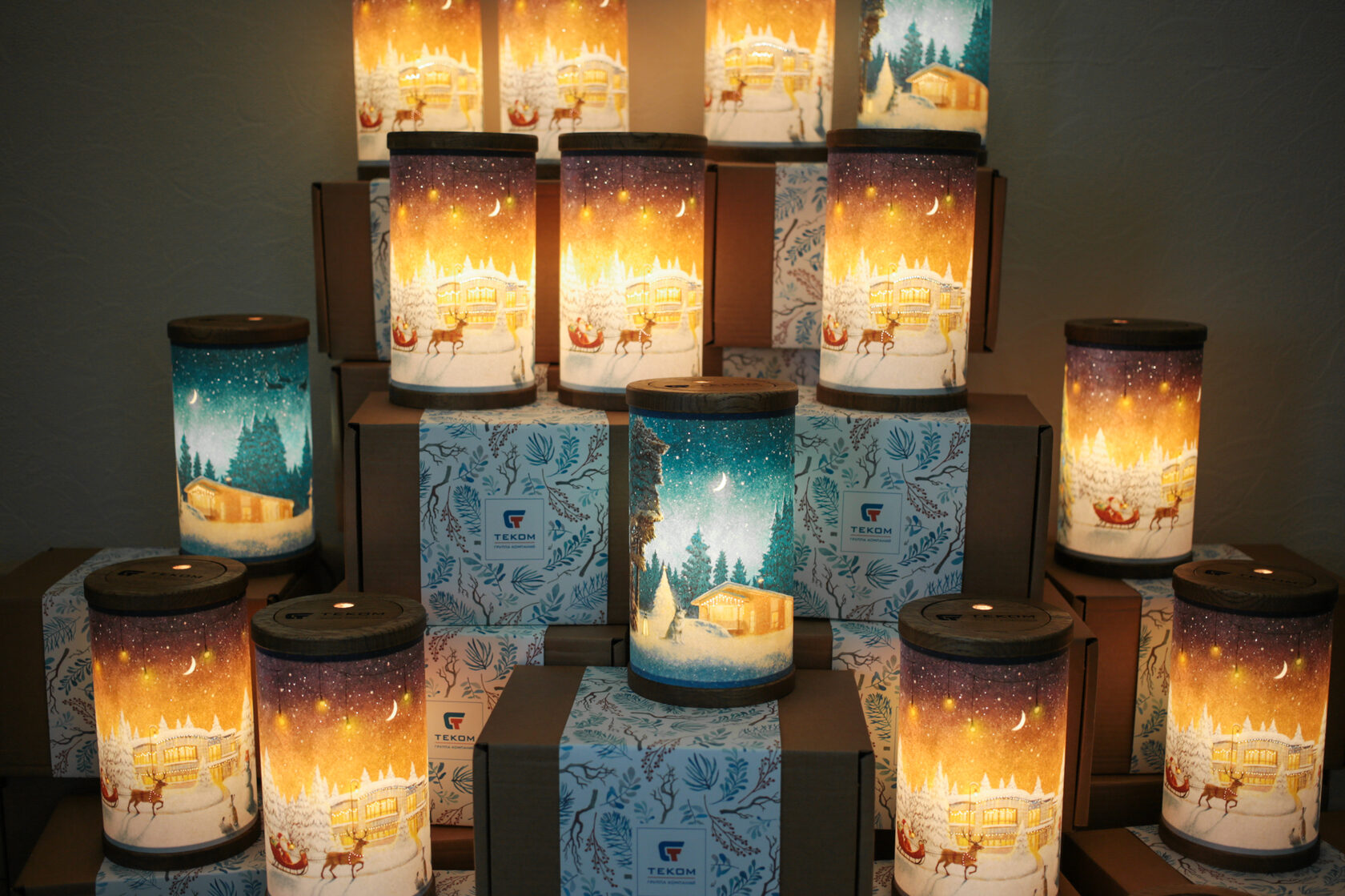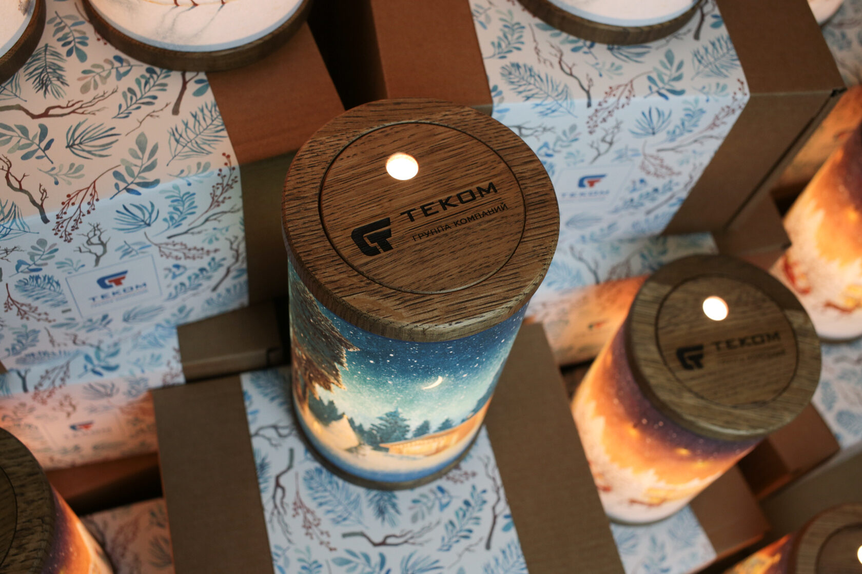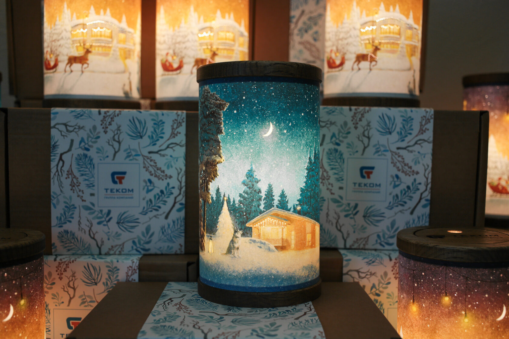 Мы изготовили 32 светильника, которые компания подарила руководству и сотрудникам на Новый год.